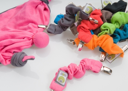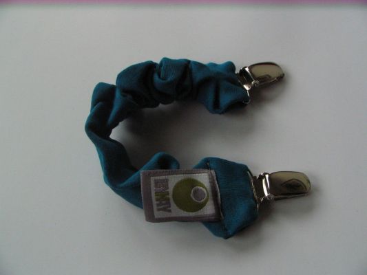 Trak za dudo je narejen iz 100% bombaža certificiranem po Oko-tex 100 standardu. Na vsakem koncu je močna kovinska zaponka, ki ju povezuje elastika oblečena v bombaž.